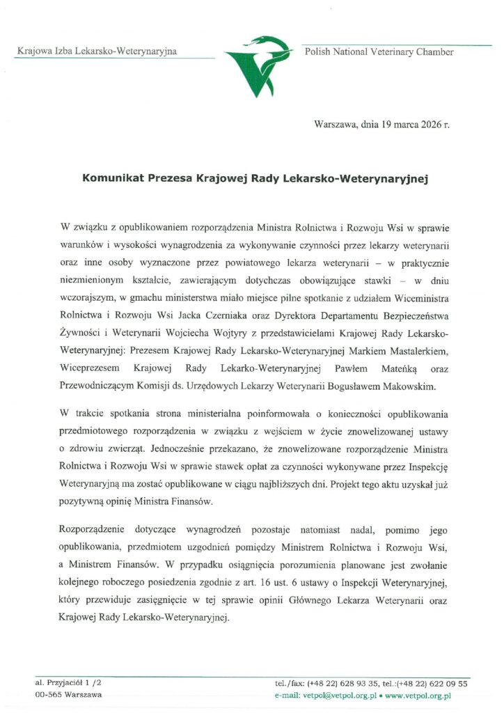 Komunikat Prezesa KRLW ws.Rozporządzenia MRiRW ws. wynagrodzeń